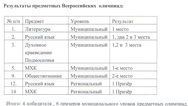 Реализуя программу развития «Школа «Диалога культур», в учреждении созданы условия для получения образования различного уровня с учетом возможностей, потребностей и здоровья учащихся. Школа работает по базисному учебному плану 2004, который включает изучение английского языка с начальной школы. Апробируются инновационные и экспериментальные программы (региональный компонент – История Московской области, Духовное краеведение, Русское речевое общение; муниципальный эксперимент - Основы православной культуры). В учебный план введены предметы школьного компонента: МХК, «Экология»,«Информатика» (8-9кл.), изучение второго иностранного – французского.