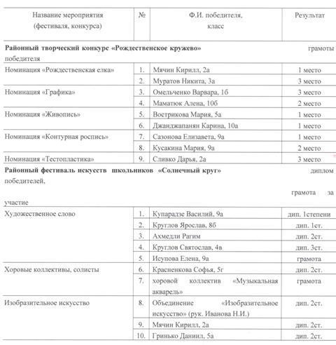 10. Реализация программы "Здоровый школьник". Коллективом школы поставлена задача создания комплексной здоровьесберегающей образовательной среды и формирования позитивного отношения, учащихся к здоровому образу жизни. Реализуется программа "Здоровый школьник". Вопросы сохранения здоровья учащихся находятся в центре организации учебно-воспитательного процесса. С целью защиты учащихся от перегрузок в школе проводится следующая работа: " Учет санитарно-гигиенических норм УВП в расписании занятий и режиме групп продленного дня. Учащиеся работают в режиме шестидневки. " Проведение физкультминуток на уроках. " Проведение дополнительных занятий (факультативы, индивидуально-развивающие, спецкурсы, элективные курсы; объединения дополнительного образования) с учетом времени на отдых после основных занятий. " Безотметочная система оценивания знаний в 1-х классах. " Введение интегрированных курсов. " Проведение уроков физкультуры с учетом распределения учащихся по группам здоровья. " Использование здоровьесберегающих образовательных технологий. " Организация медико-психолого-педагогического мониторинга состояния здоровья, физического и психического развития школьников: диспансеризация учащихся; мониторинг по исследованию физической подготовленности учащихся. " Организация каникулярного времени и отдыха учащихся: походы, экскурсии, экскурсионные поездки; туристско-оздоровительные лагеря в Крыму. " Специальные занятия по формированию культуры здоровья и профилактике вредных привычек. На протяжении всех лет существования школа славилась спортивными достижениями. Школьная спартакиада продолжается весь учебный год, в ней принимают участие команды всех 5-11 классов. Реальным результатом системы работы школы по здоровьесбережению являются изменения в состоянии здоровья учащихся. В школе работают спортивные секции по волейболу, баскетболу, дзюдо. Творческие кружки: бисероплетение, драматический кружок. Занятия эстетической направленности - хор. Предметные кружки: английский язык, информатика, русский язык, краеведение. Практика организации питания в нашей школе убедили нас в преимуществе столовых, работающих непосредственно на сырье. Их полная автономность в приготовлении пищи, дает большую возможность обеспечения на месте блюд самого разнообразного меню. Отсутствие необходимости транспортировки пищи на длительное расстояние, её замораживания (охлаждения) и повторного разогрева дает возможность сохранить не только вкусовые достоинства, но и пищевую ценность. С другой стороны, приготовление пищи в таких условиях требует наличия значительного штата персонала в таких столовых, они должны быть оснащены полным оборудованием для обработки сырья, приготовления пищи, её раздачи, сбора и мытья посуды. В столовой МБОУ СОШ №24 выполняются все санитарно - эпидемиологические требования к организации питания обучающихся в школе. В начале 2012 года в столовую поступило новое оборудование по программе модернизации школьных столовых (см. Приложение 1).